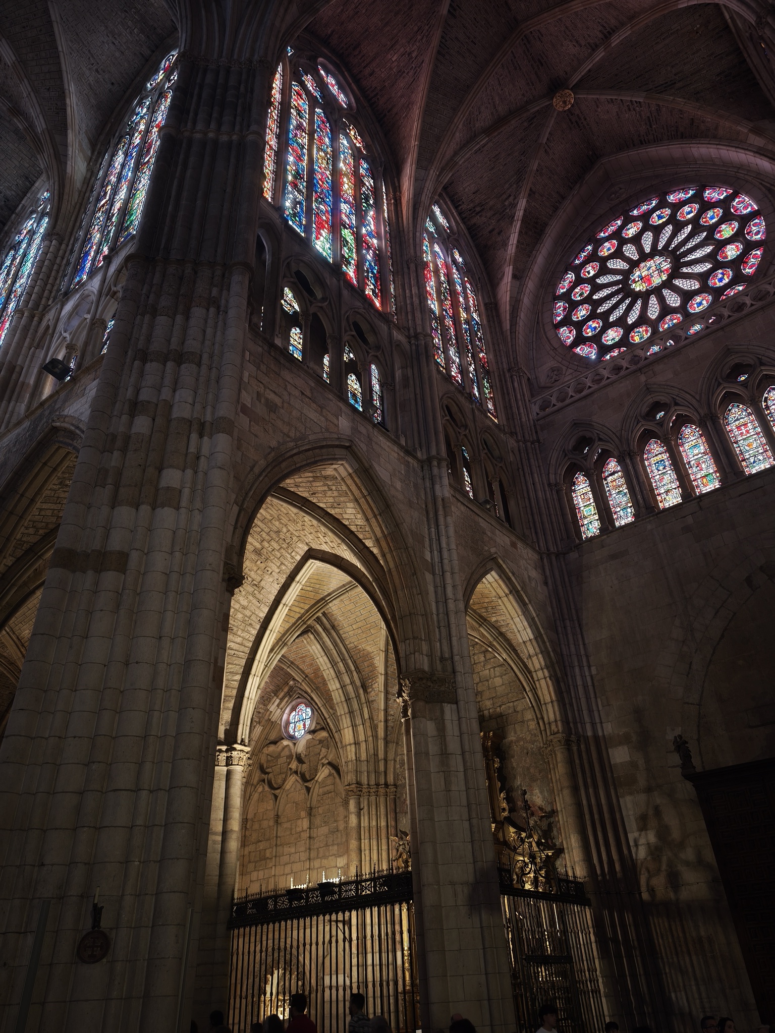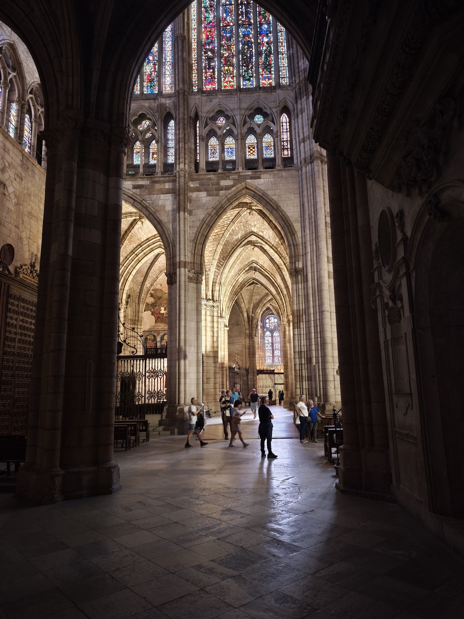 Внутри его, конечно, после трагического и счастливо побежденного пожара сделали отлично, все отодраили, дерево все новое, витражи оттерты, так что прям сияет все. Изрядный челлендж — это разрулить потоки туристов и верующих, поэтому есть специальные служащие, которые регулируют, впрочем, достаточно деликатно, что, если вам молиться — вот здесь проходите, в центральный неф, а если вам айфоном пощелкать — вот тут, по кругу, через боковые, не мешайте тем, кто тут «по делу».