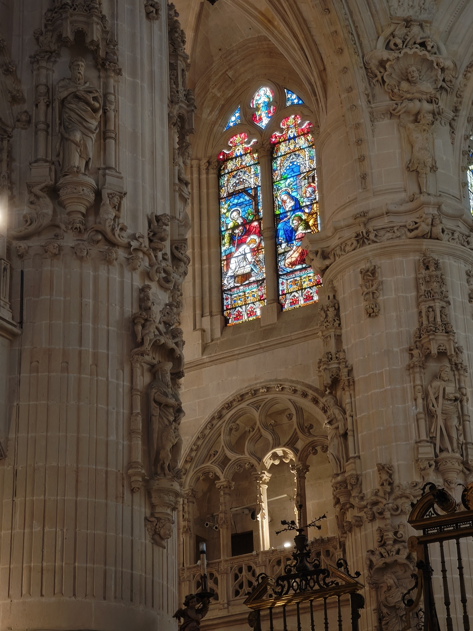 Вокруг хоров расположена стена скульптурного ограждения с 40 евангельскими сценами, которое, что любопытно, постепенно создавалось на протяжении нескольких веков, с XVI по XVIII век, при этом в целом сохраняя стилистическое единство.